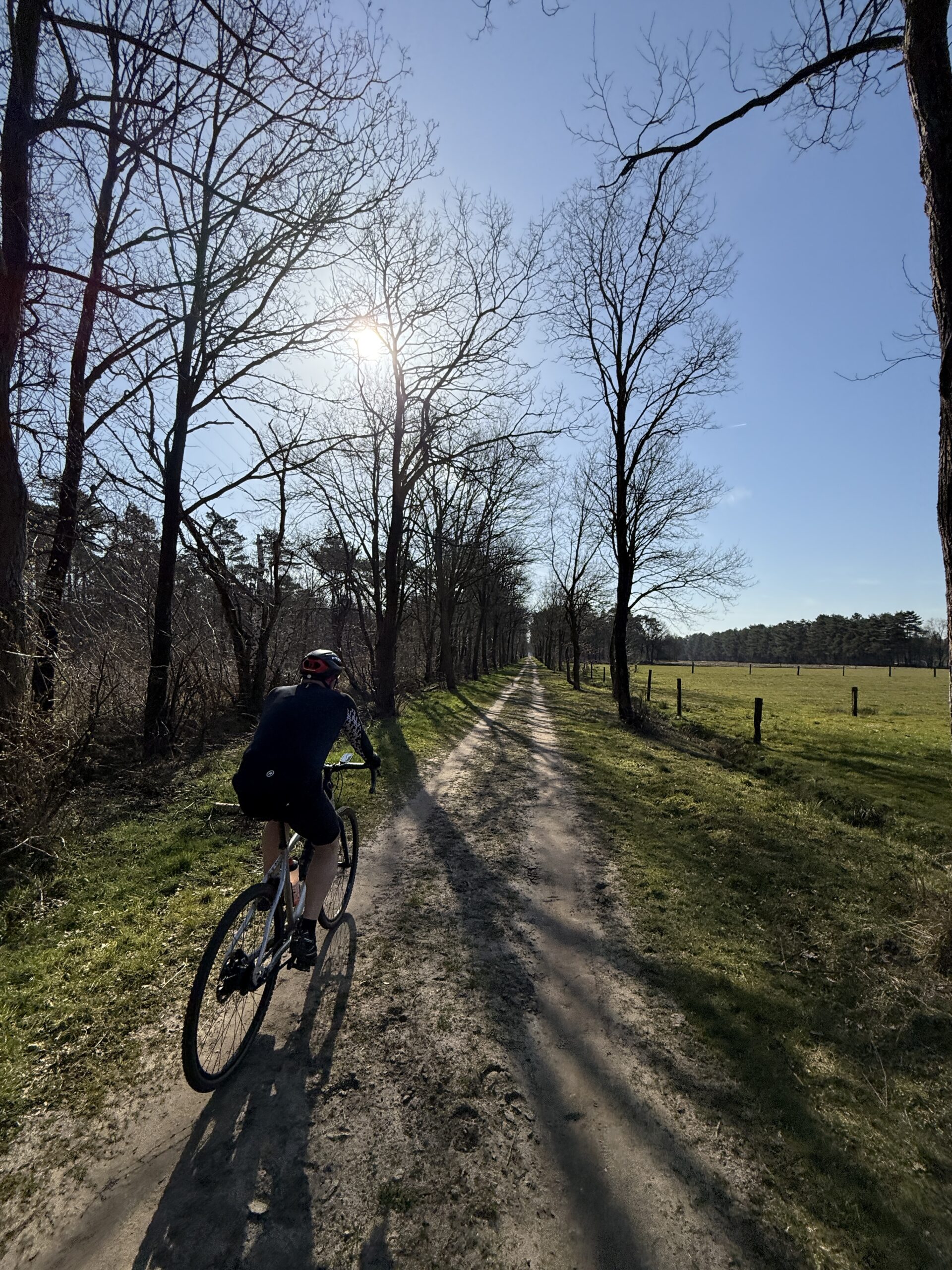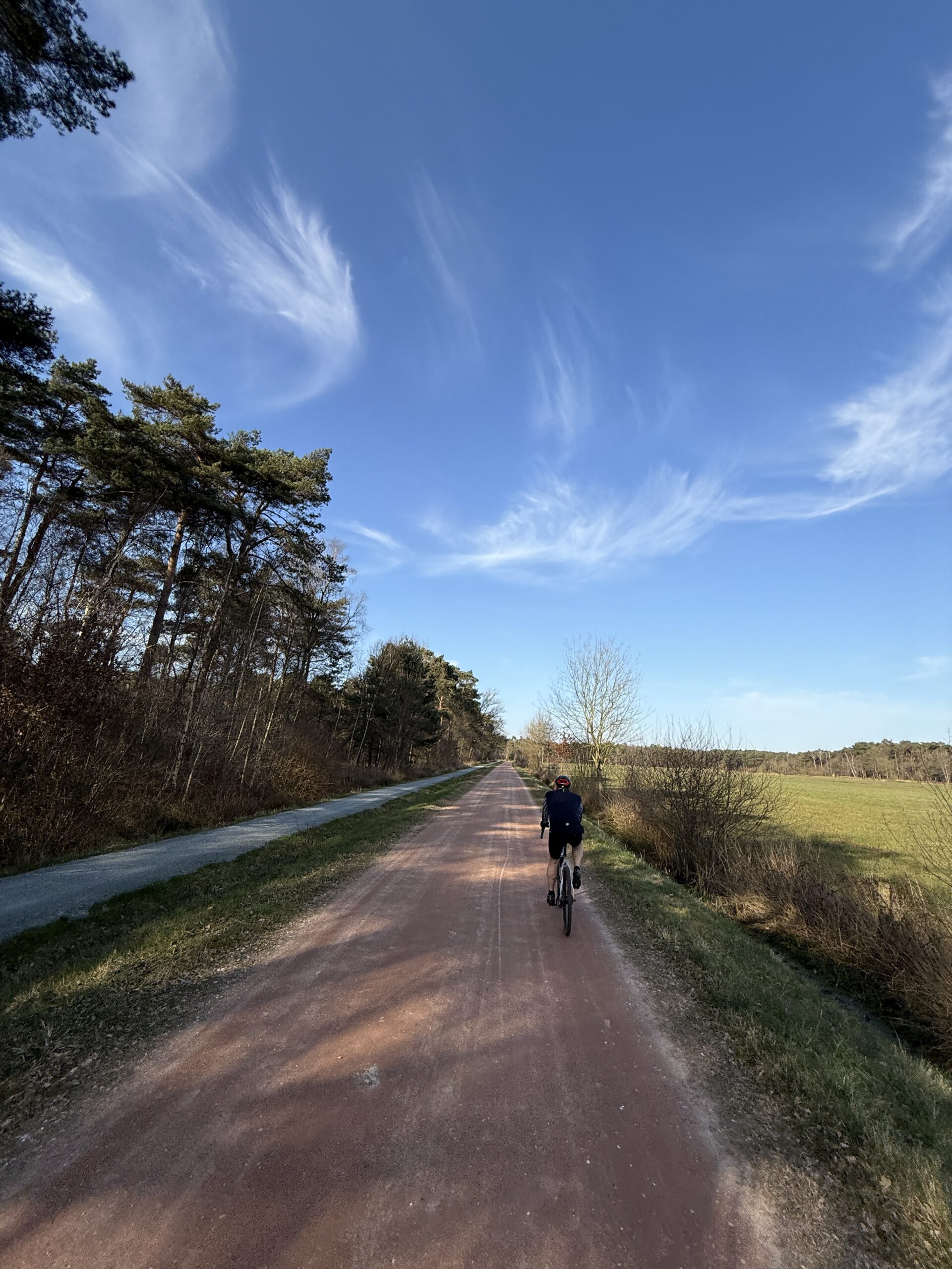 Als je Malle uit fiets wordt je gelijk blij. Een 5 km breed gravelpad.